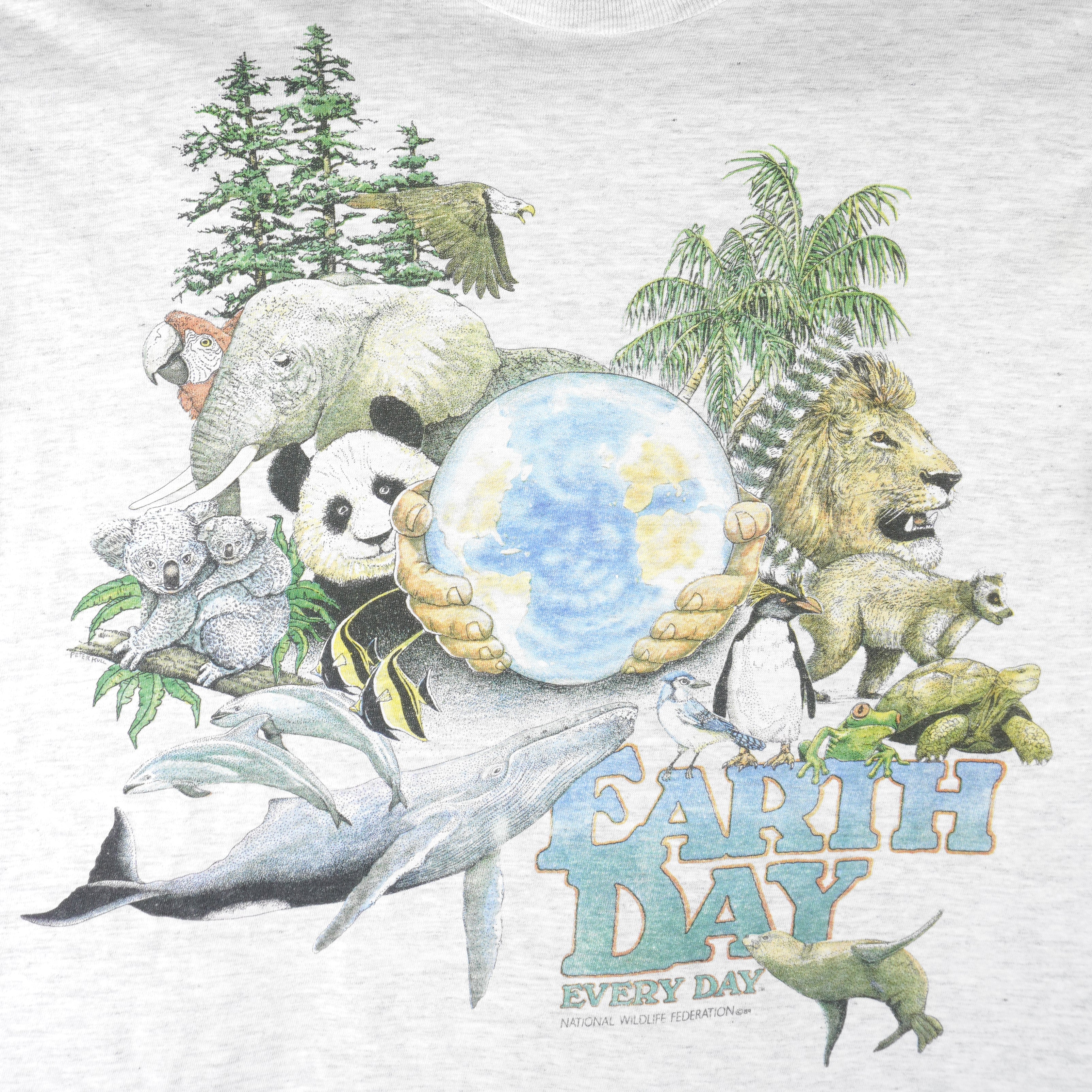 1989 Vintage Habitat Earth Day Every Day Single Stitch animal Print T-Shirt. Grey in color, spell-out. Tag is X-large but fits like large size and is in excellent condition.
