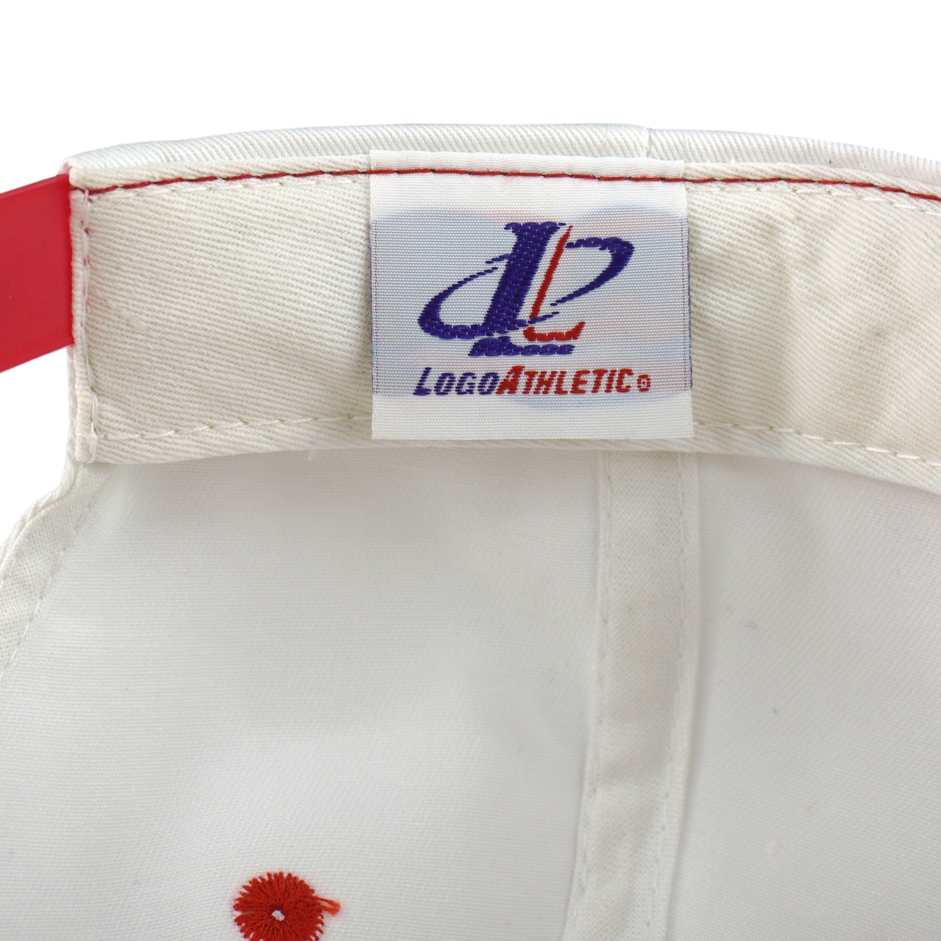 1990s Vintage NFL Pro Line San Francisco 49ers Shark Tooth Embroidered Snapback Hat with giant center logo. White and red in color, adjustable size with signs of wear, visible minor marks on the side and inside, otherwise in very good condition.