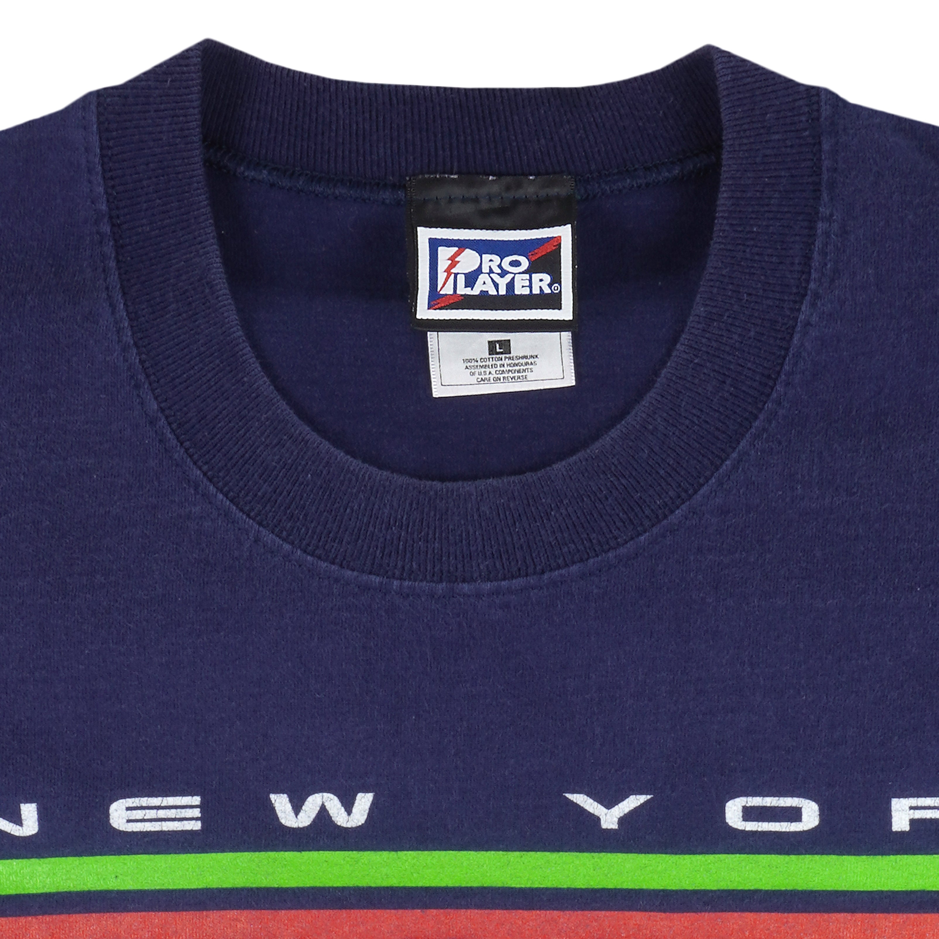 1998 Vintage MLB New York Yankees World Series Champions T-Shirt by Pro Player. Dark blue in color with big logo & spell-out. Fits large size and is in excellent condition.
