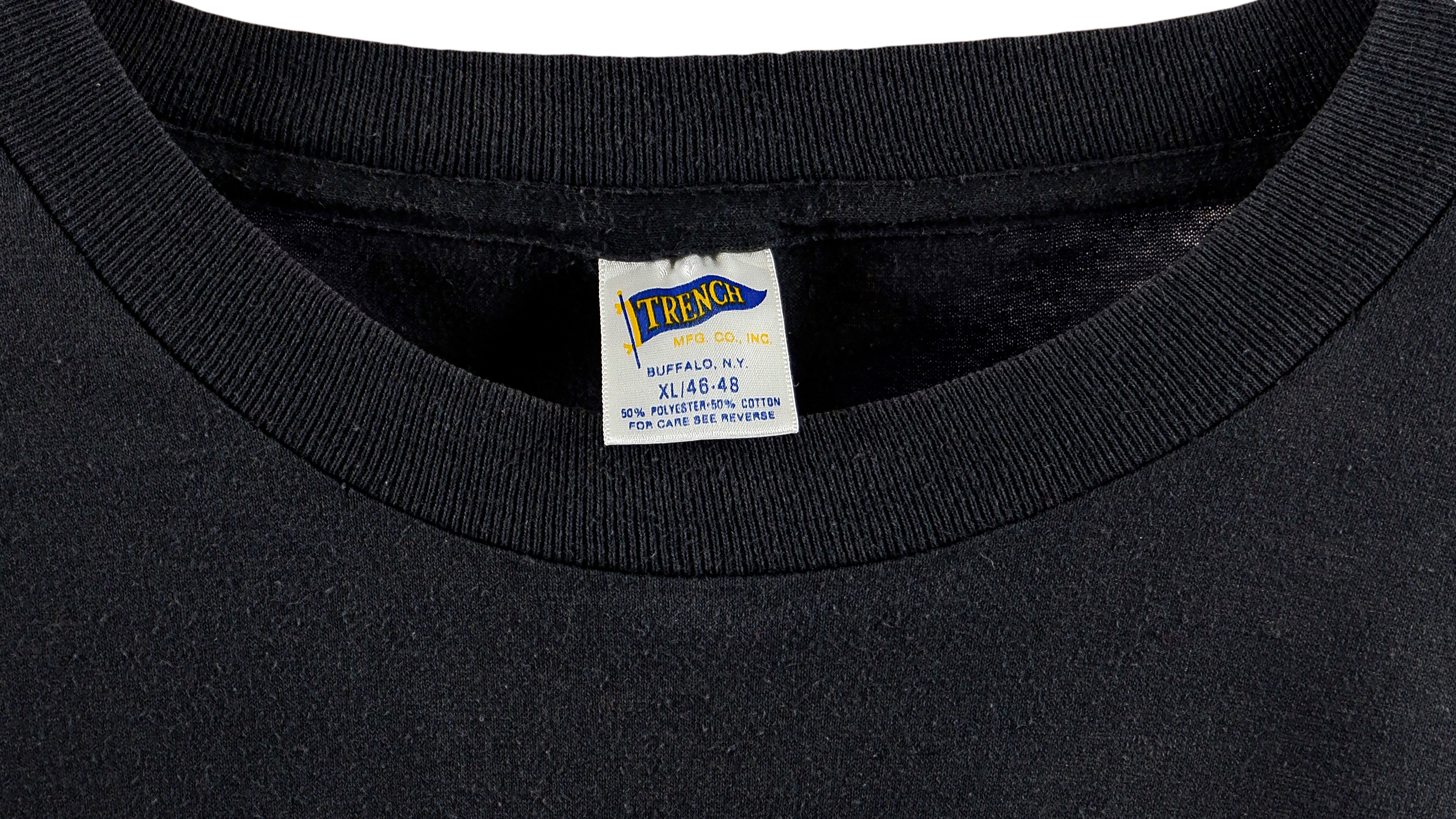 1990 Vintage MLB Chicago Cubs Spell-Out T-Shirt by Trench. Black in color with team logo on the front chest, fits X-large size and is in excellent condition.