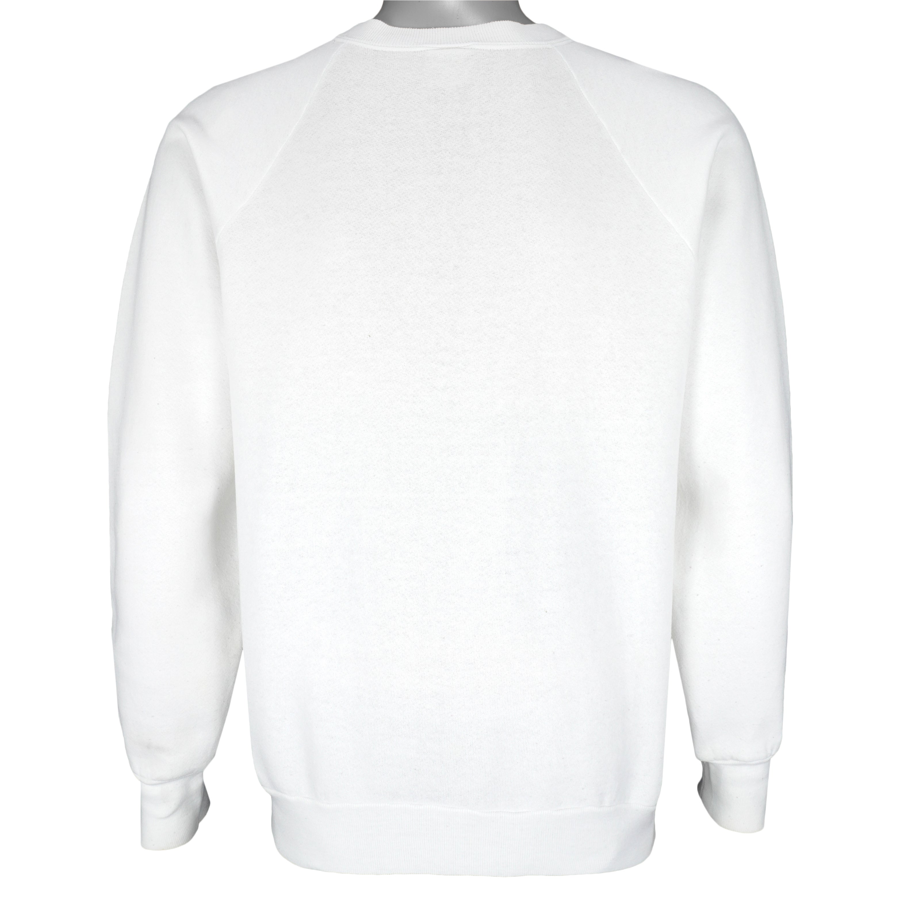 1990s Vintage NASCAR Dale Earnhardt, Number 3 Catch Him If You Can Crew Neck Sweatshirt by Fruit Of The Loom. White in color, fitting large size and is in excellent condition.