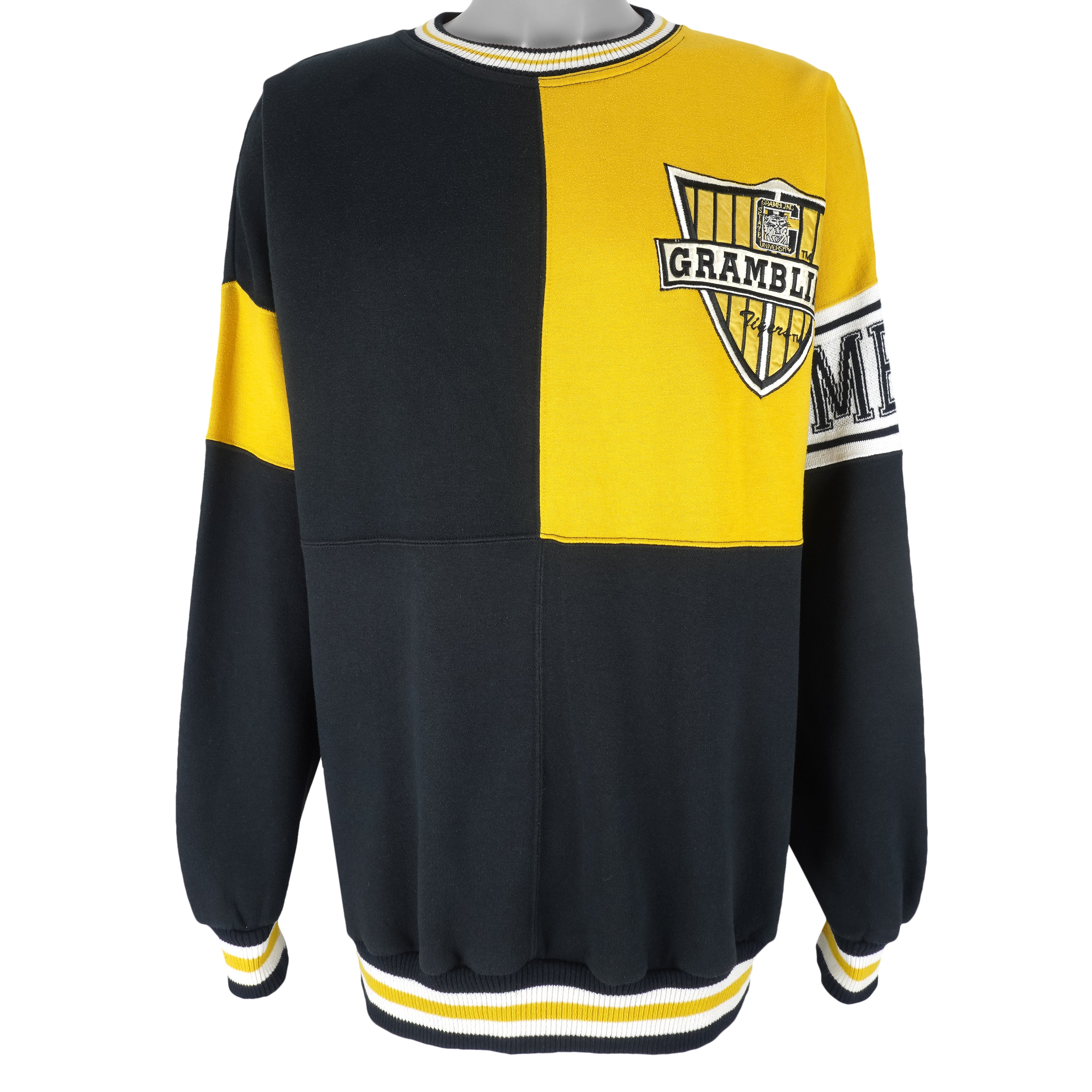 1990s Vintage NCAA Grambling State University Tigers Crew Neck Sweatshirt by Conic. Blue and yellow in color, fitting X-large size and is in excellent condition.