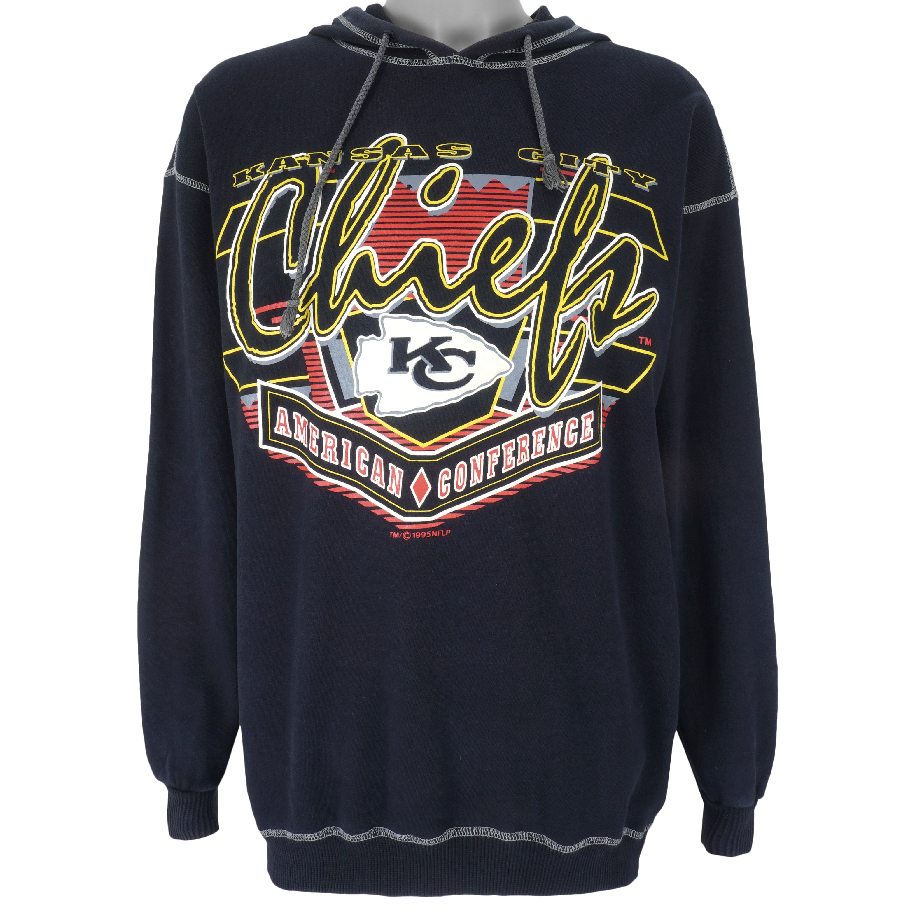 1995 Vintage NFL Kansas City Chiefs American Conference Hooded Sweatshirt. Black in color with big spell-out, fits large and is in excellent condition.