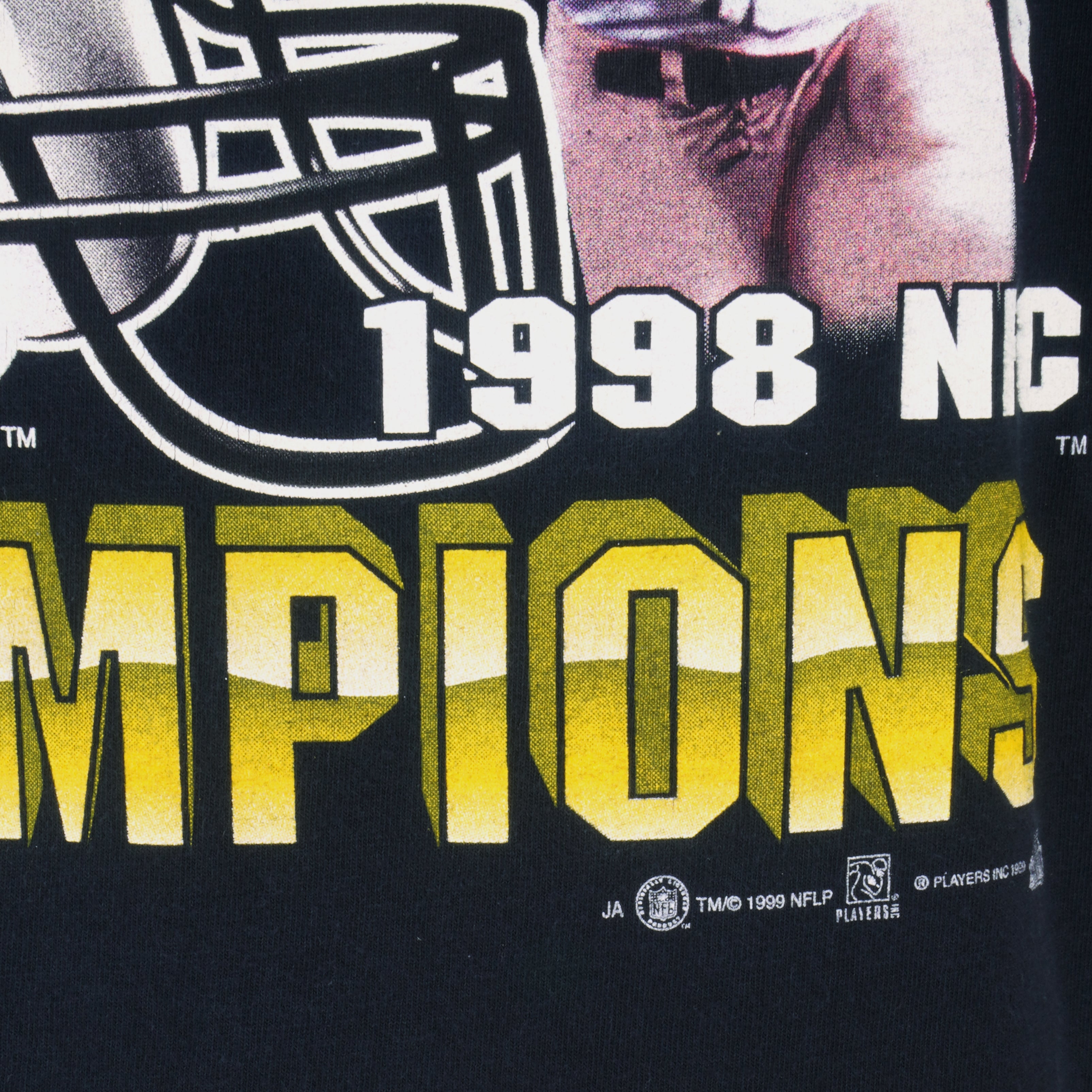 1999 Vintage NFL Atlanta Falcons Super Bowl 33th NFC Champions with Helmet and Players T-Shirt by Sport Attack. Black in color, fits X-large size and is in very good condition.