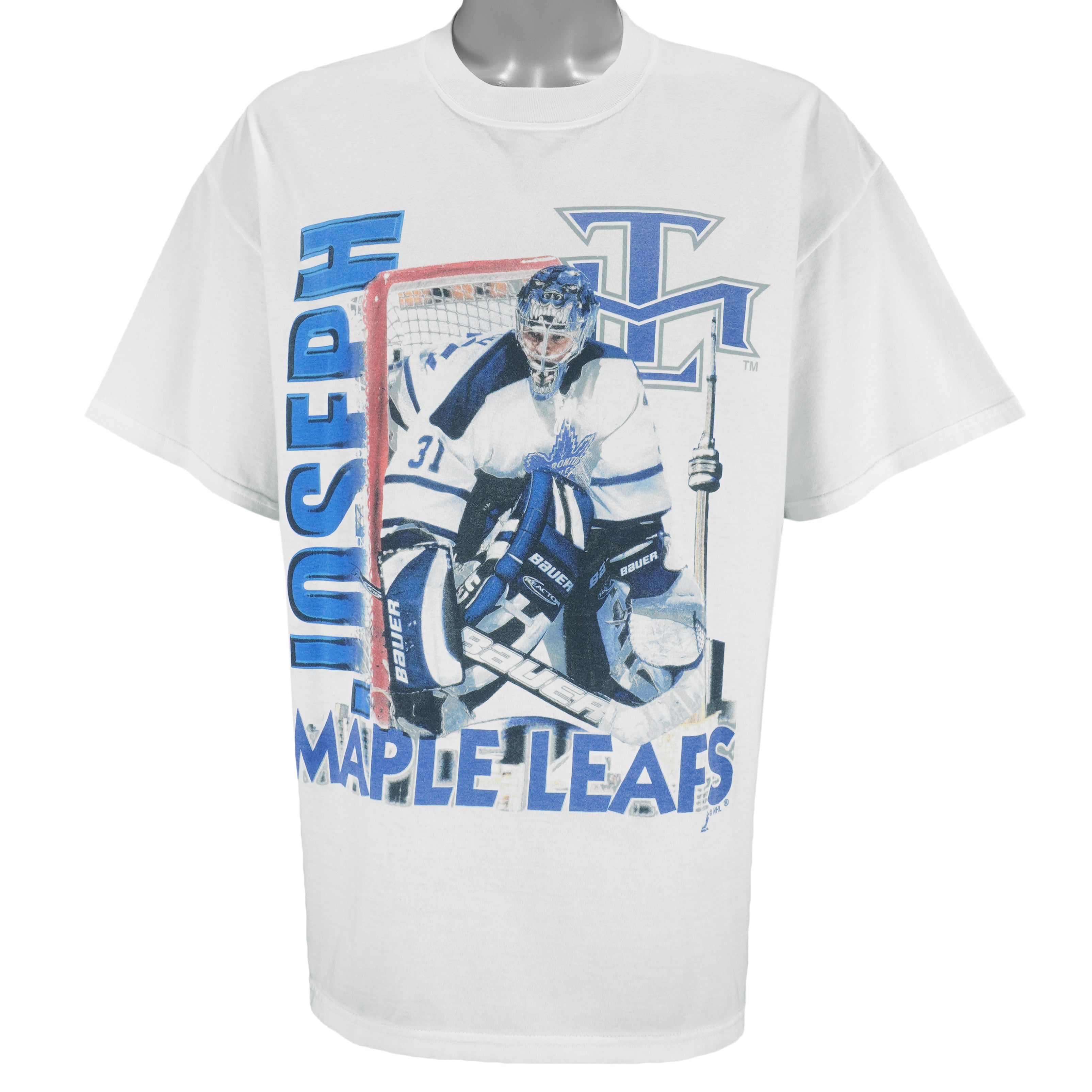 NHL (M&O Knits) - Toronto Maple Leafs Curtis Joseph T-Shirt 1990s X-Large