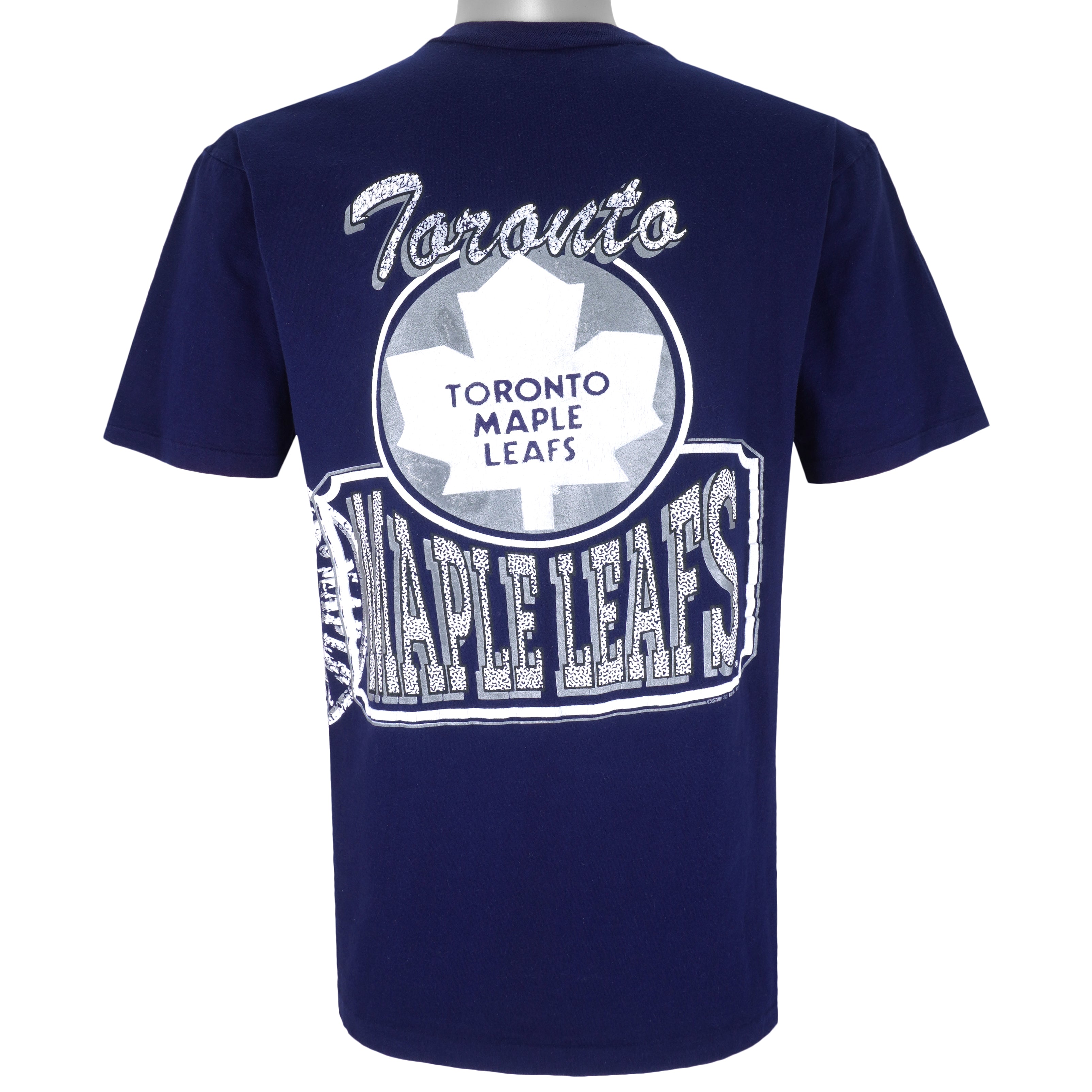 1992 Vintage NHL Toronto Maple Leafs Single Stitch T-Shirt by Tiger. Dark blue in color with big spell-out and logo, fits medium size and is in excellent condition.