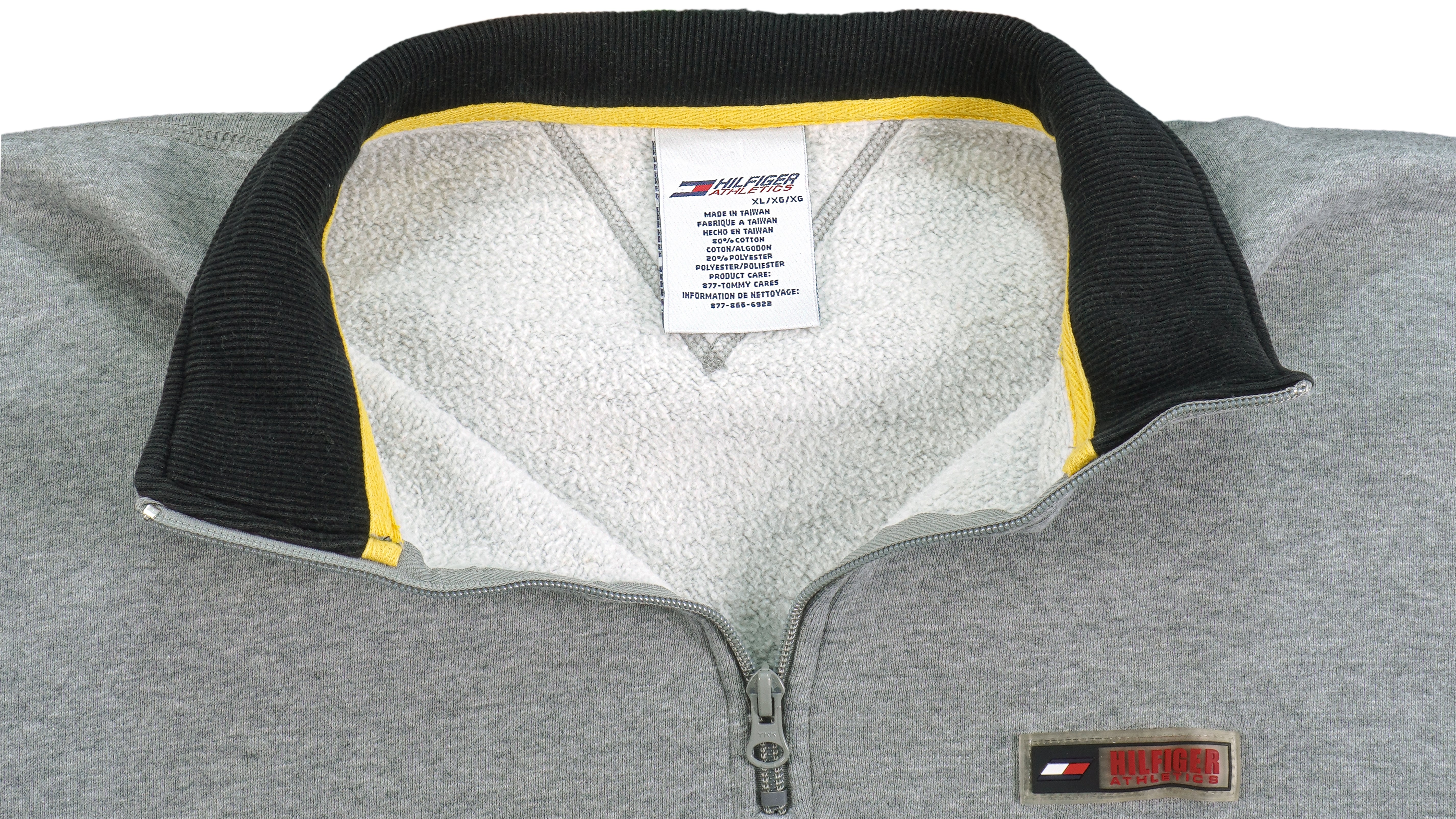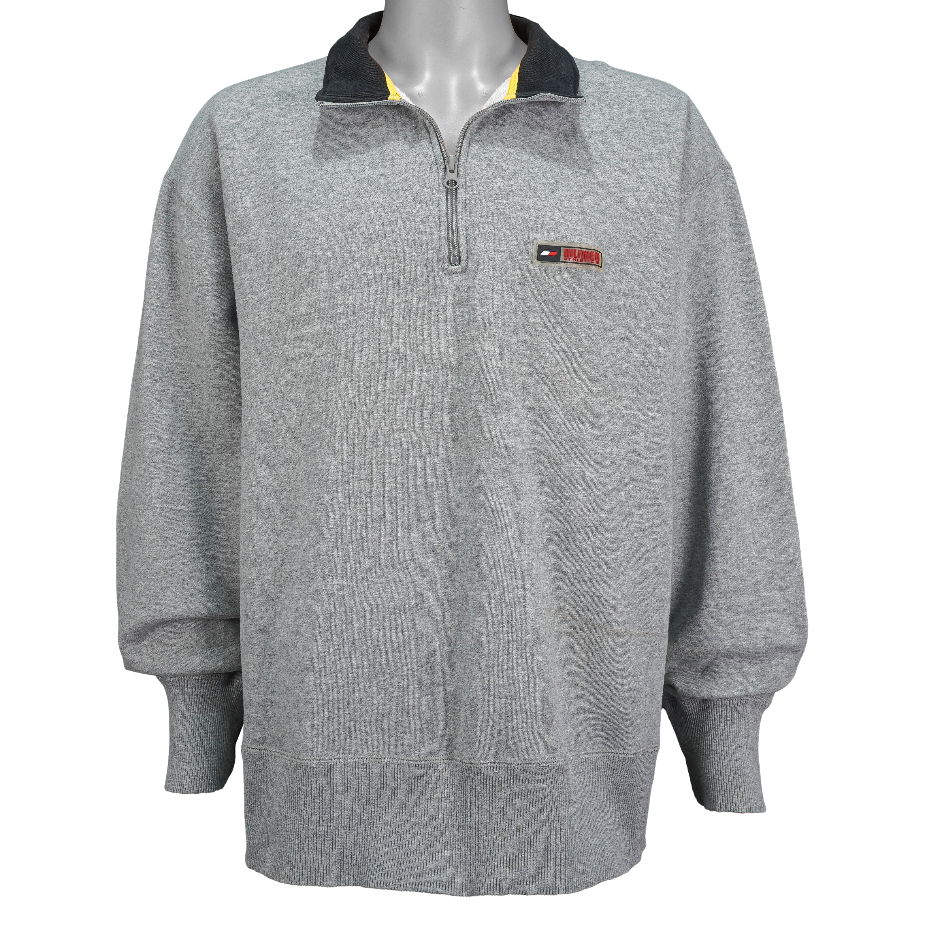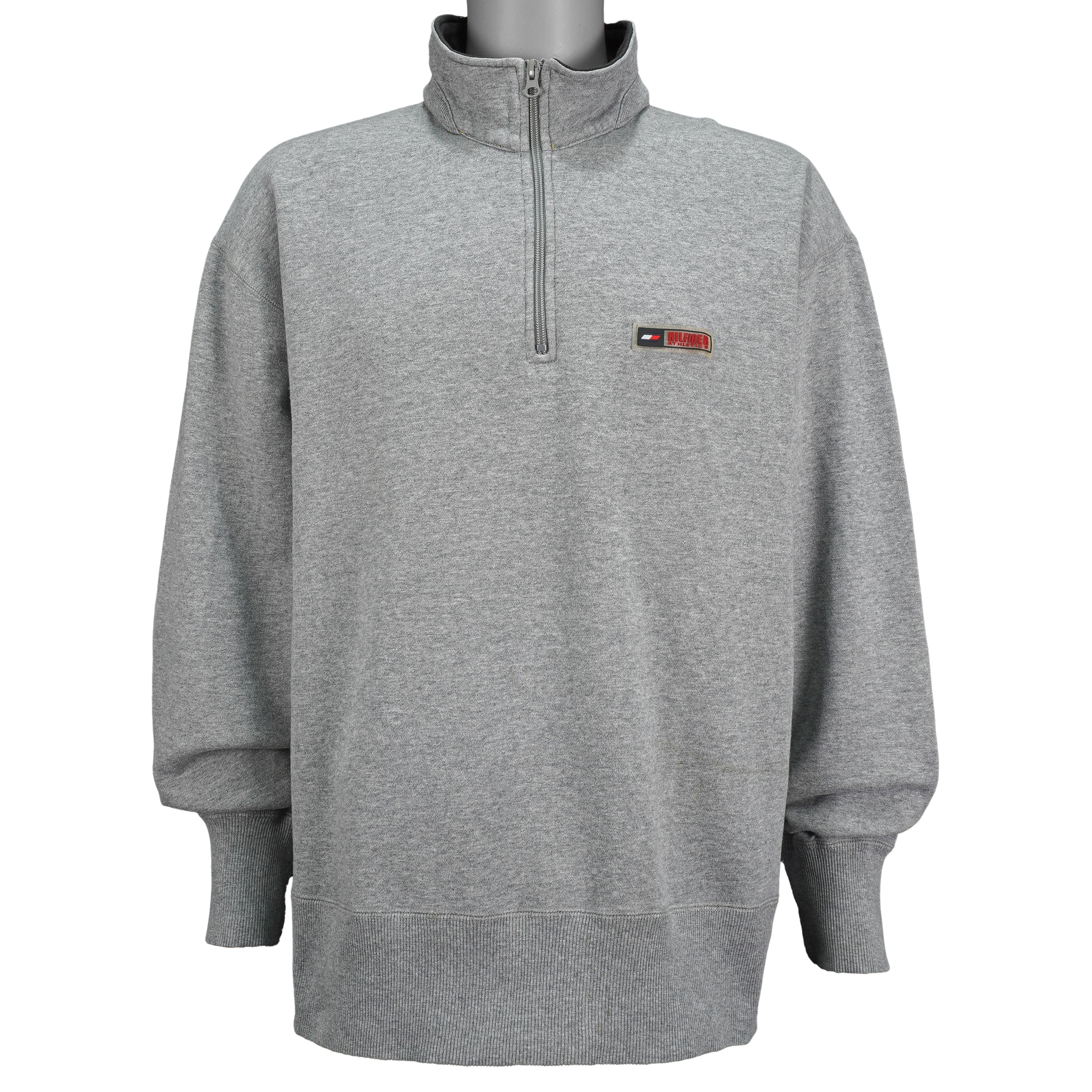 Tommy Hilfiger - Grey Athletics Spell-Out 1/4 Zip Sweatshirt 1990s X-Large