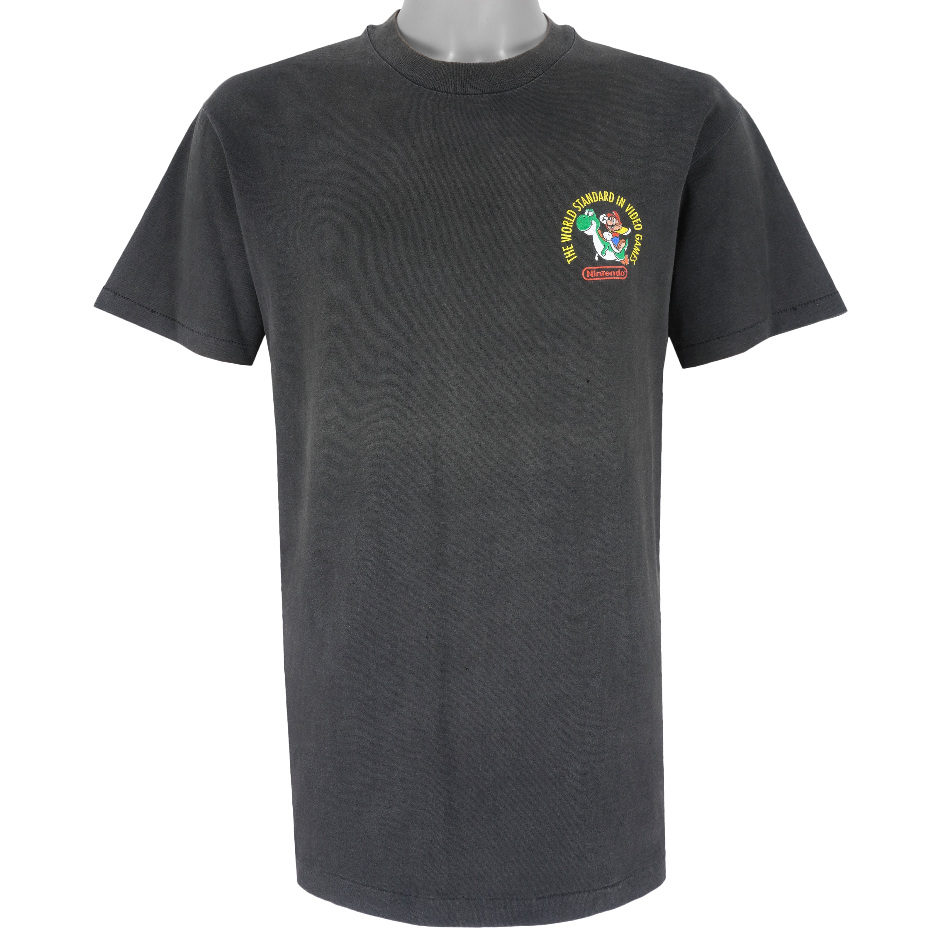 1990s Vintage Nintendo Super Nes Super Scope Video Game The World Standard In Video Game Single Stitch T-Shirt by Hanes. Faded black in color with spell-out, fits large size and in excellent condition.
