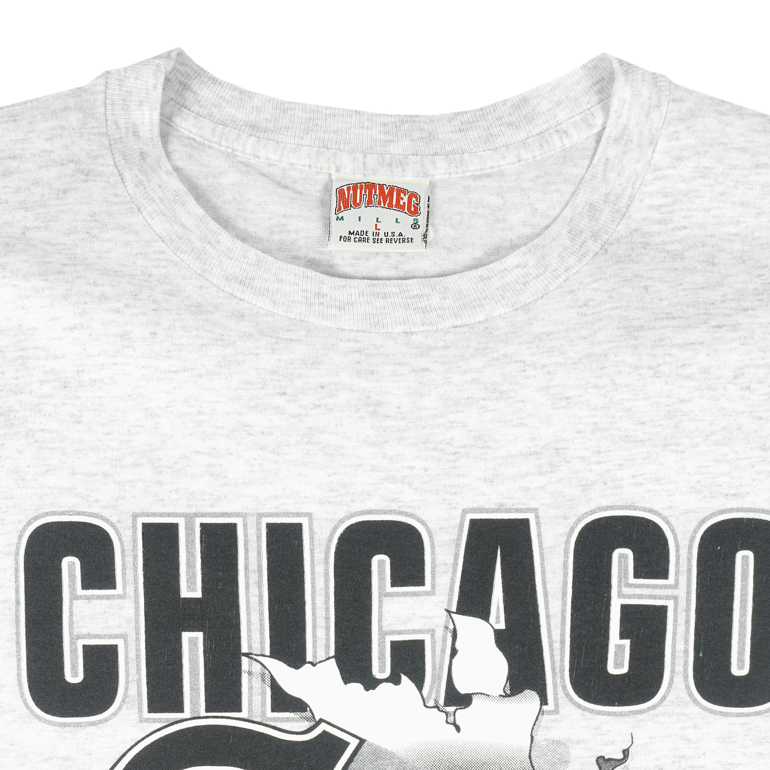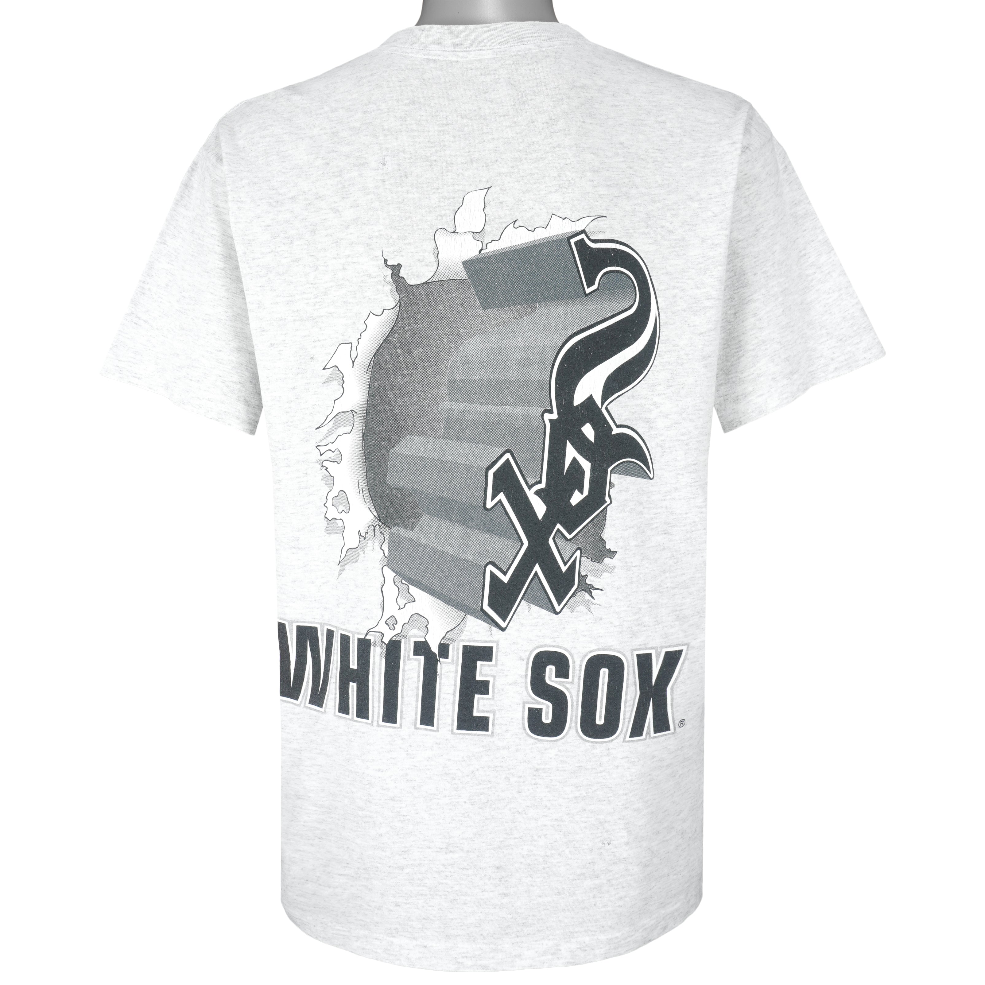 1990s Vintage MLB Chicago White Sox Breakout Serie Big Logo & Spell-Out T-Shirt by Nutmeg. Grey in color, fits large size and is in excellent condition.