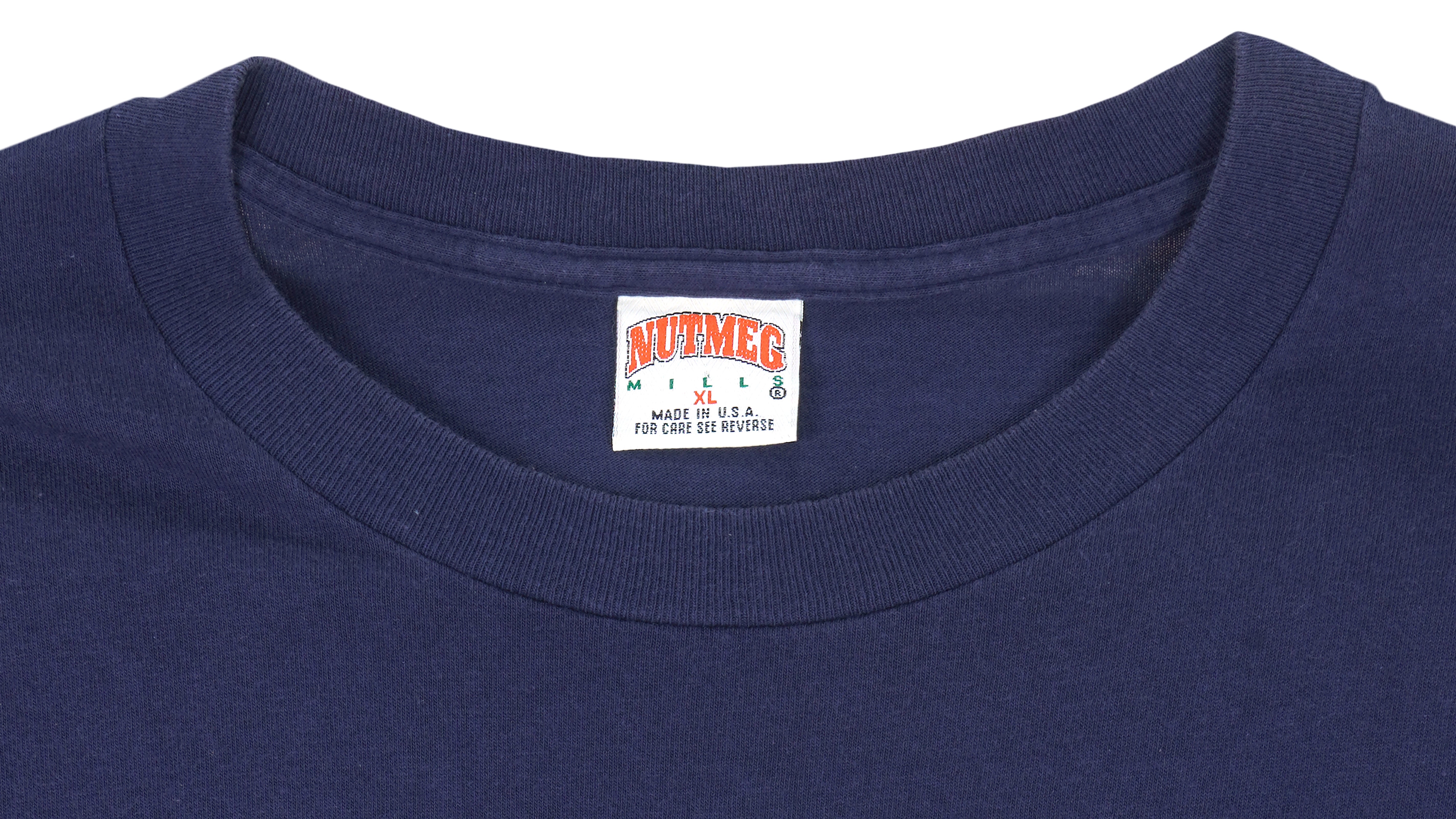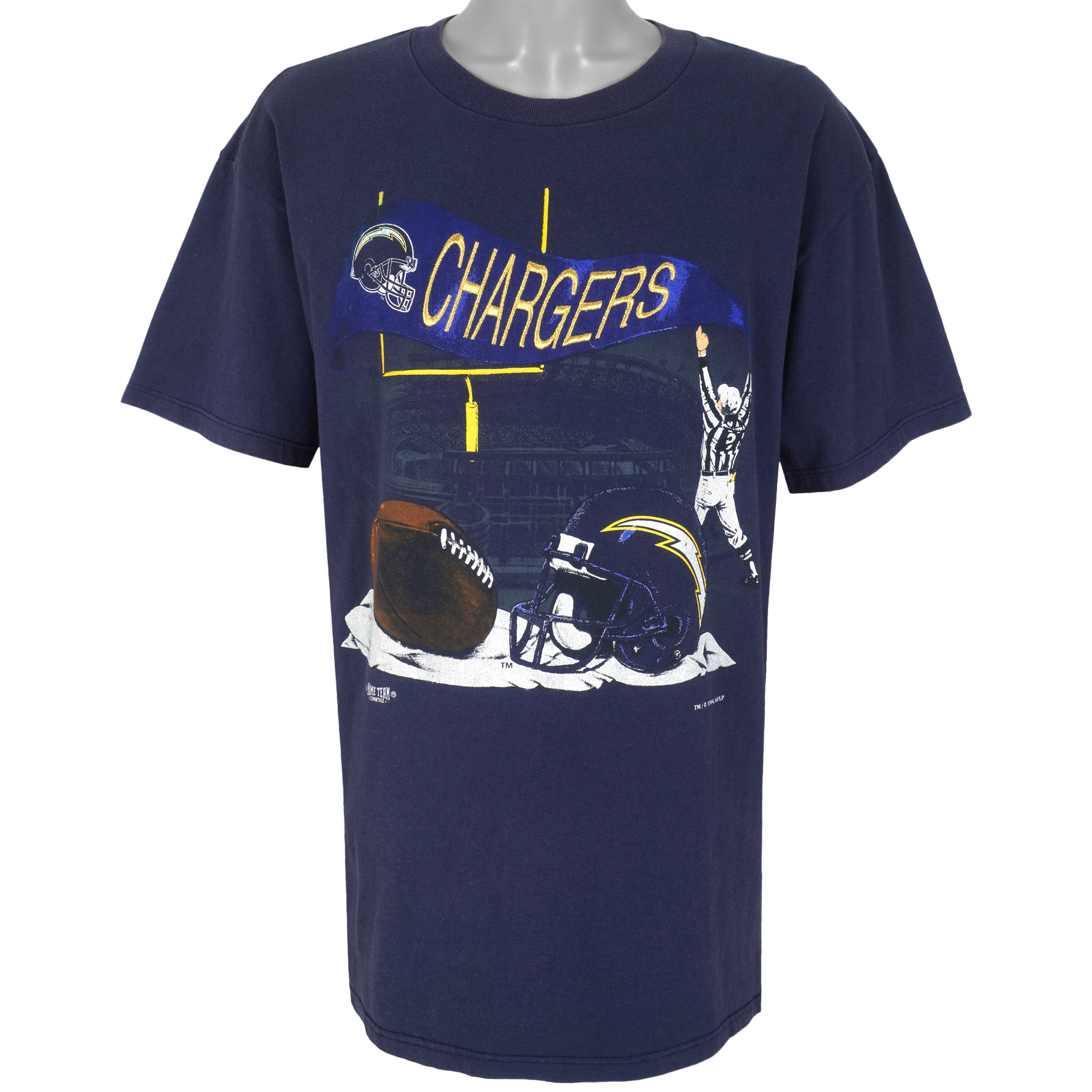 1994 Vintage NFL San Diego Chargers T-Shirt by Nutmeg. Blue in color with big logo & spell-out on the front. Fits X-large size and is in excellent condition.