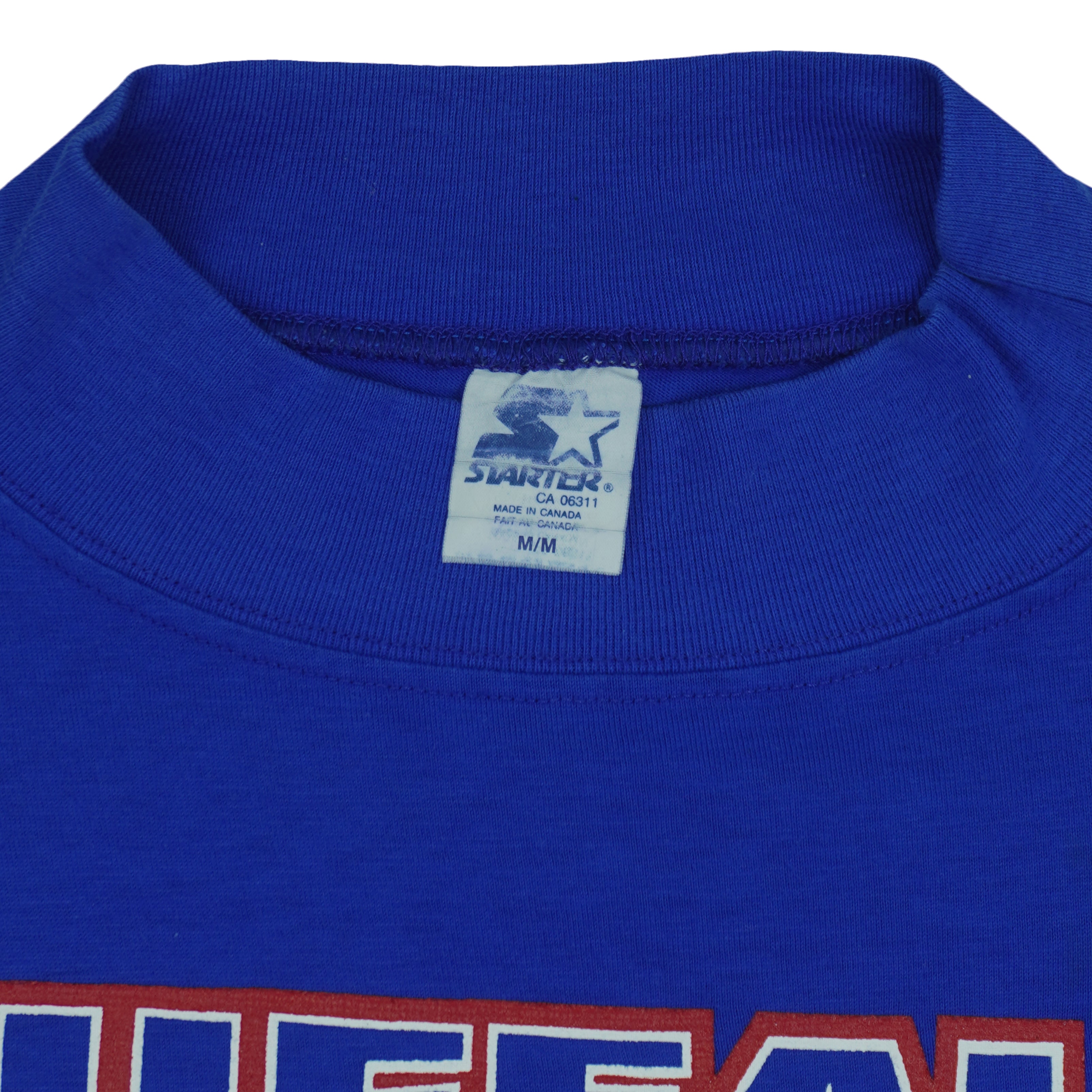 1991 Vintage Starter NFL Buffalo Bills Turtleneck Long Sleeve Shirt. Blue in color with big spell-out & logo on front, fits a medium size with signs of wear and is otherwise in very good condition.