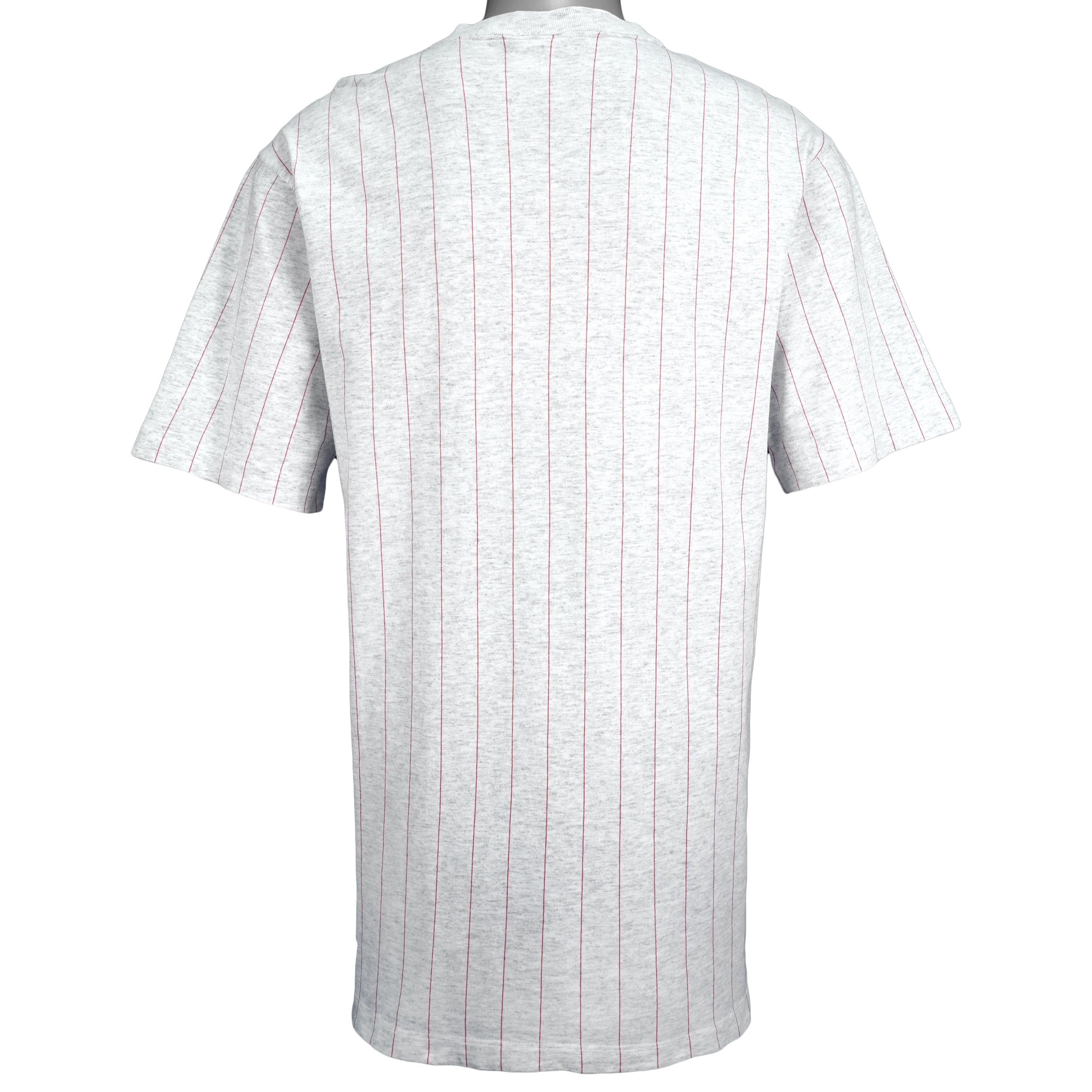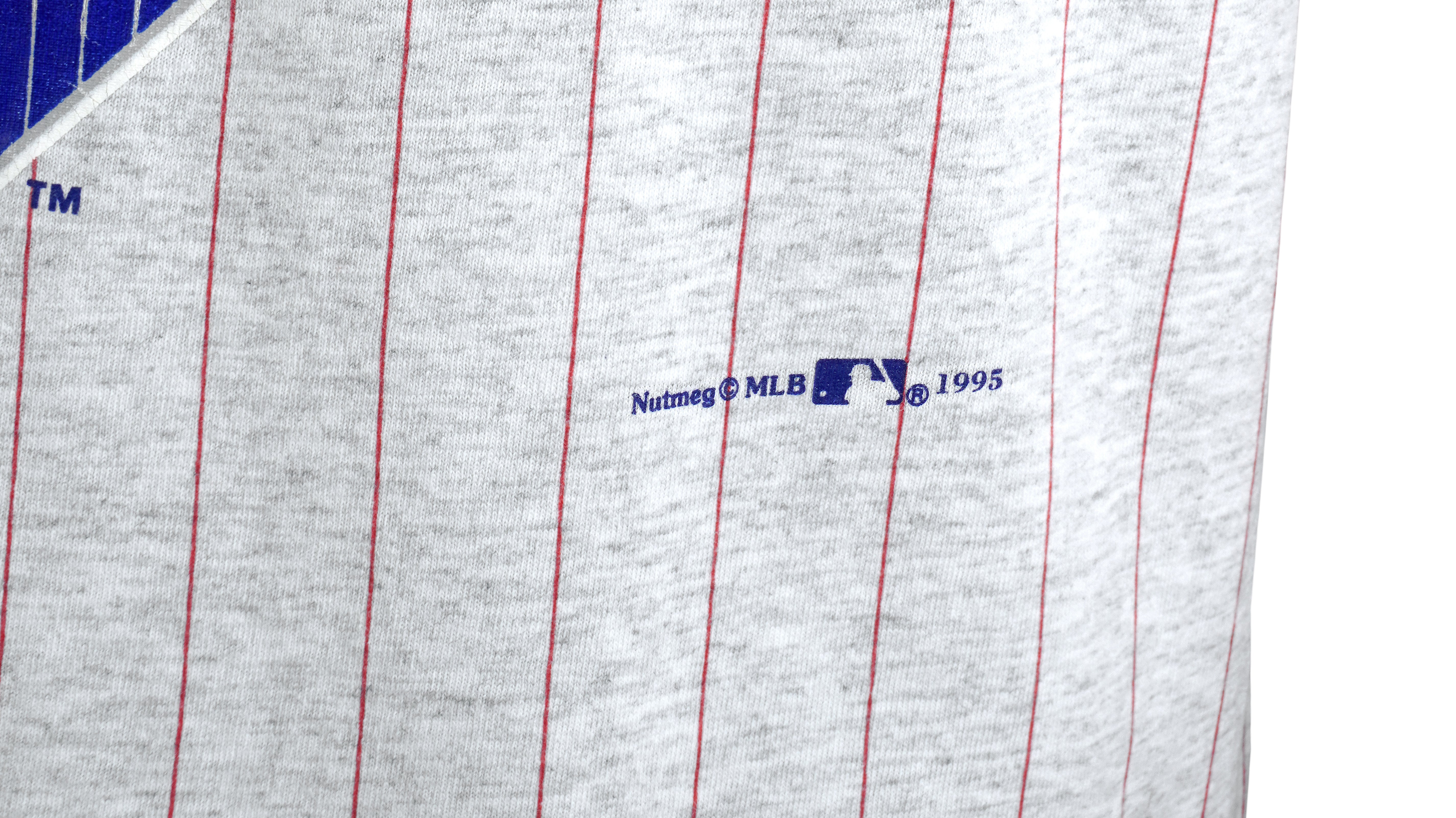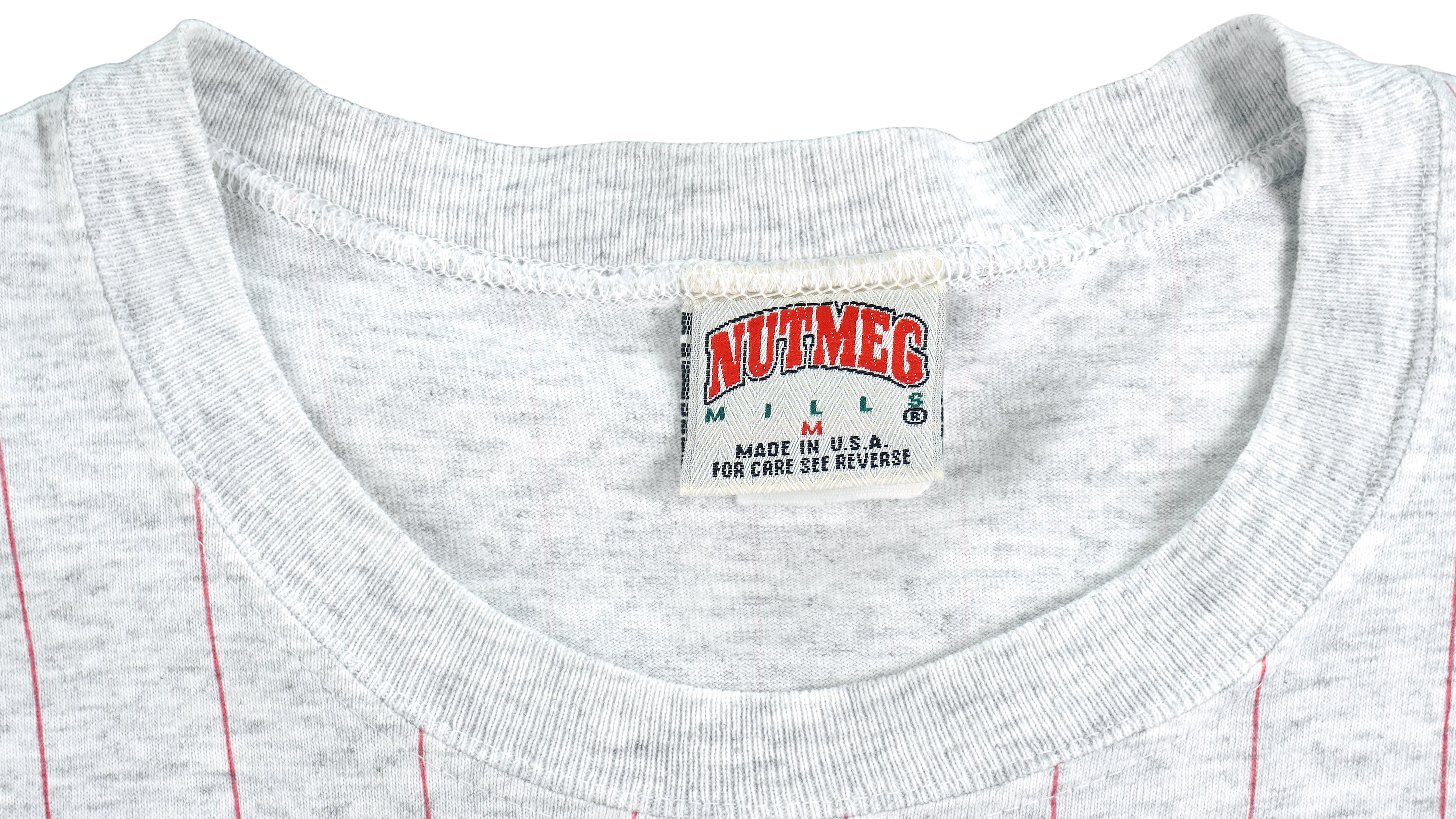 1995 Vintage MLB Texas Rangers Spell-Out T-Shirt by Nutmeg Mills. Grey in color, tag is medium but fitting like large size and is in excellent condition.