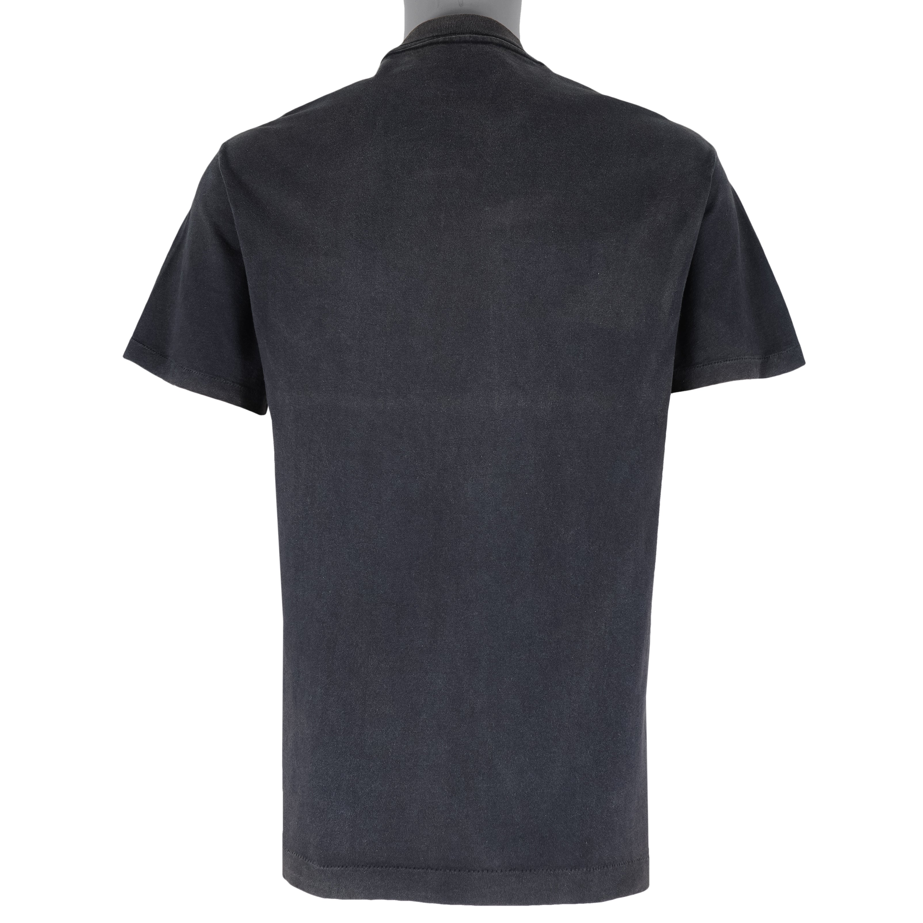 1990s Vintage NFL Philadelphia Eagles Single Stitch T-Shirt by Trench. Black in color with big spell-out & logo. Fits large size and is in excellent condition.