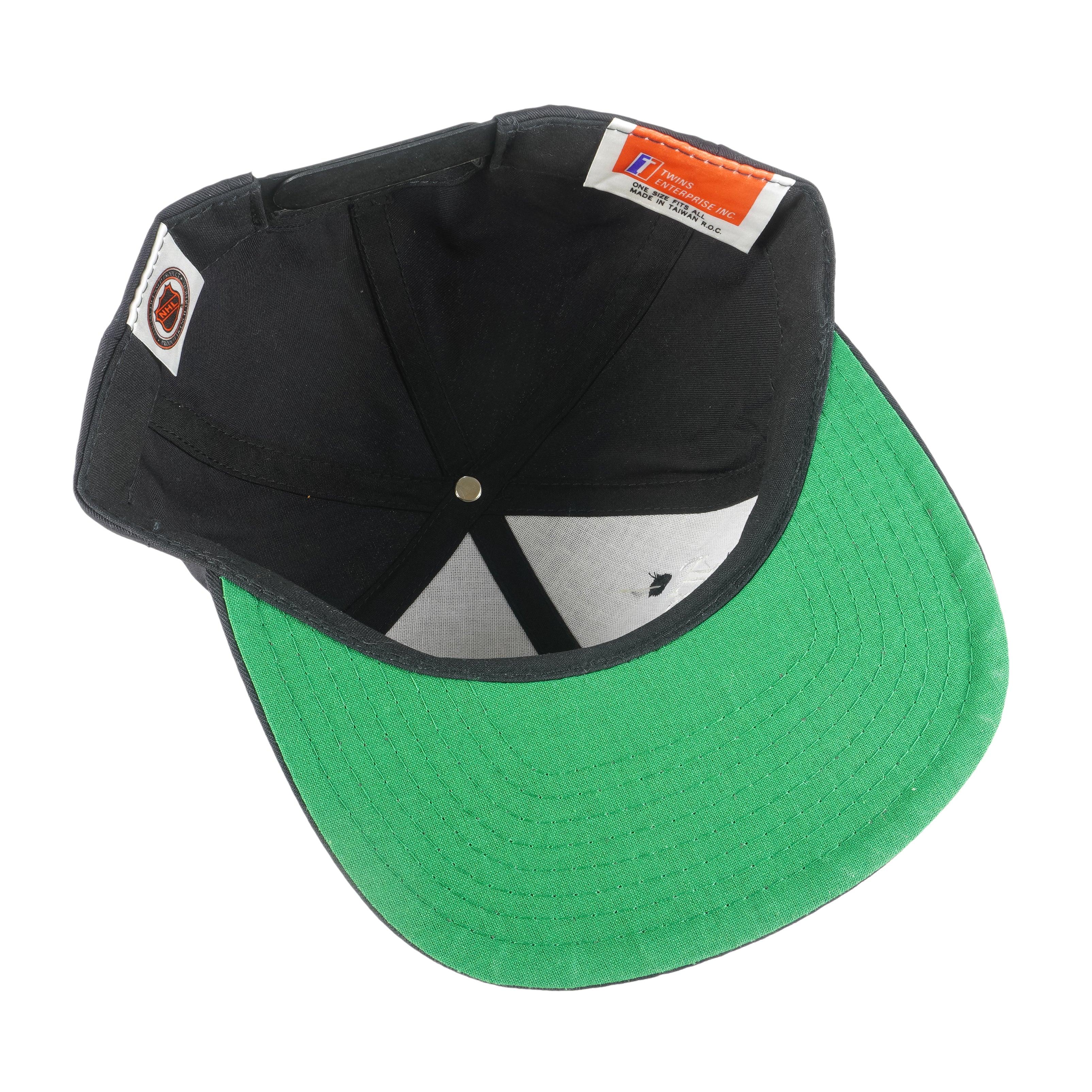1990s Vintage NHL Tampa Bay Lightning Deadstock Snapback Hat with giant center logo front and back by Twins Enterprise. Black in color, adjustable size and is in excellent condition.