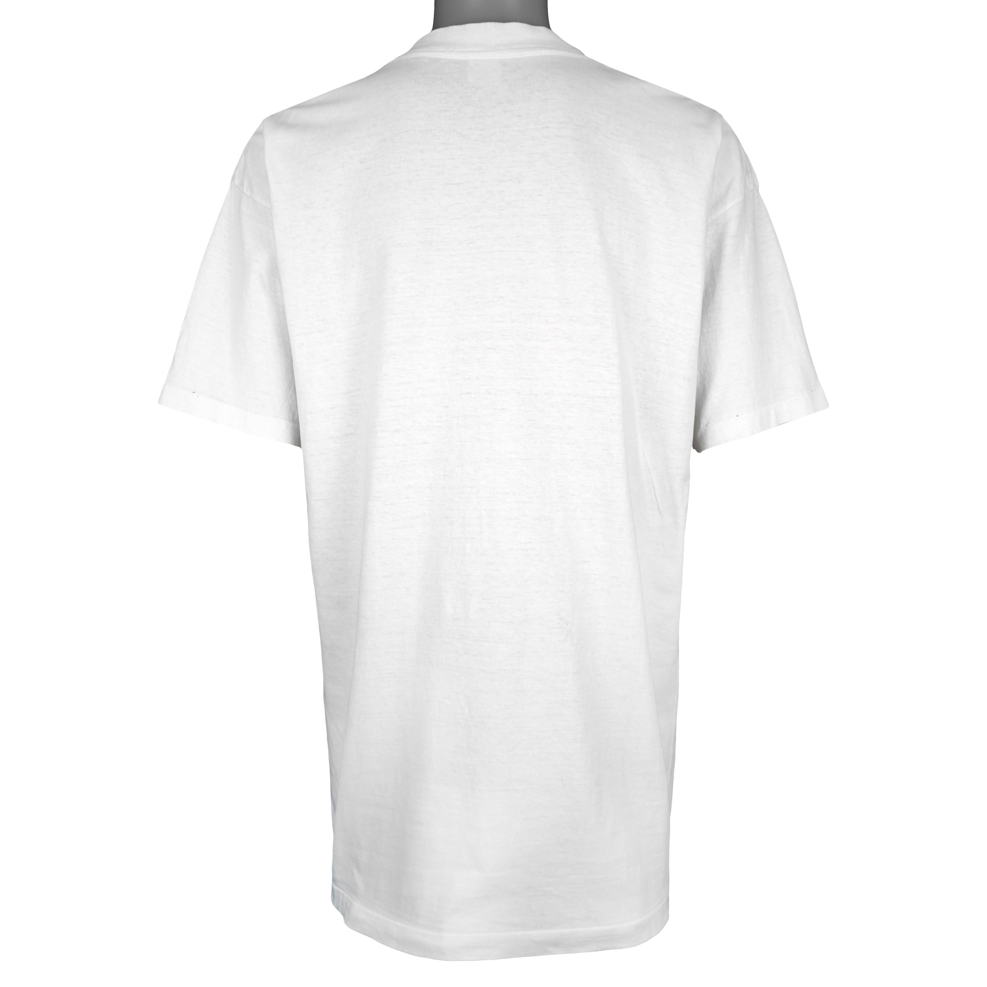 1992 Vintage CFL Calgary Stampeders Grey Cup Champions Single Stitch T-Shirt by Chalk Line. White in color, big spell-out & helmet logo fits an X-large size with signs of wear - repaired on back and is otherwise in very good condition.