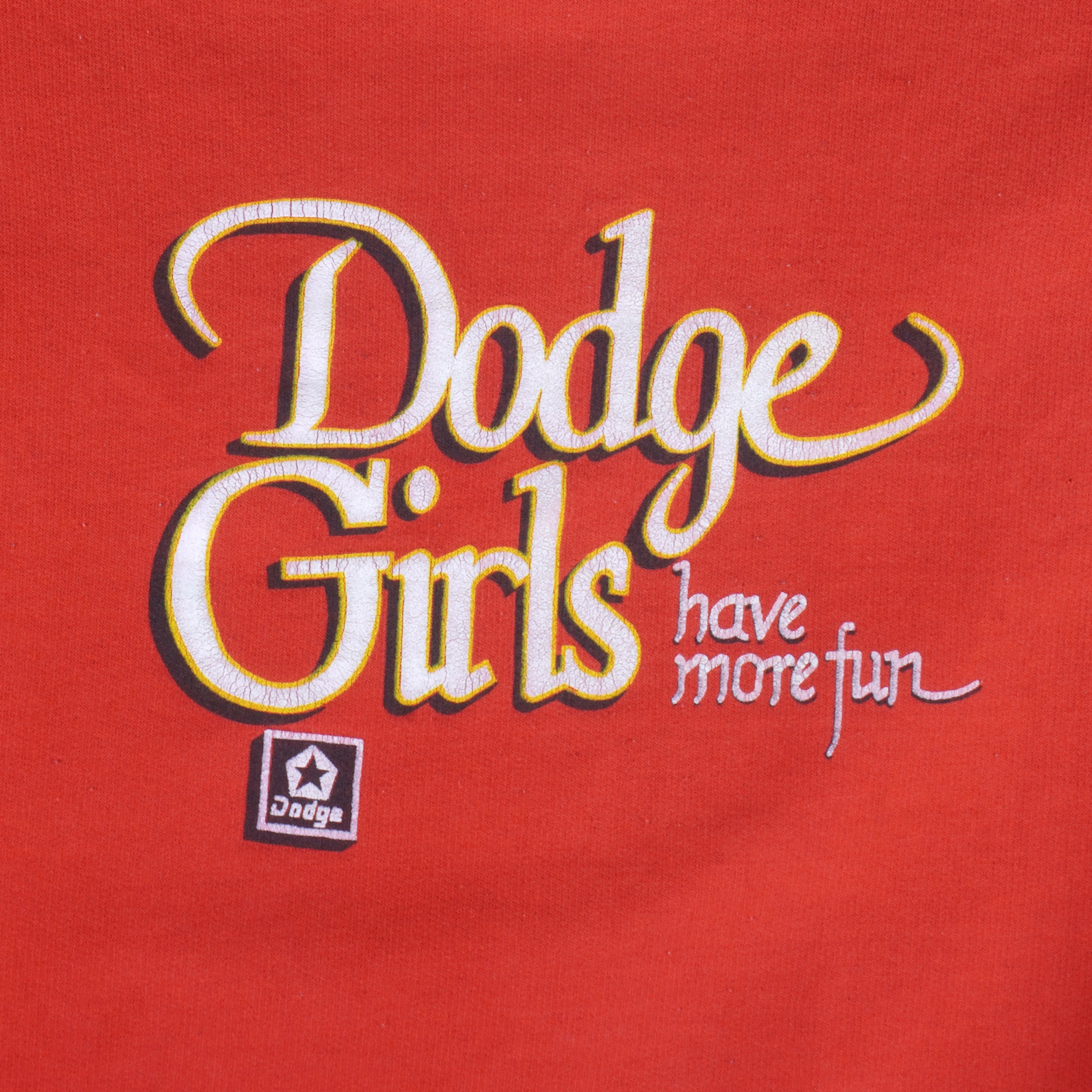 1990s Vintage Dodge Girls Have More Fun crew neck sweatshirt. Red with white in color, made in Canada, fits large size and is in excellent condition.