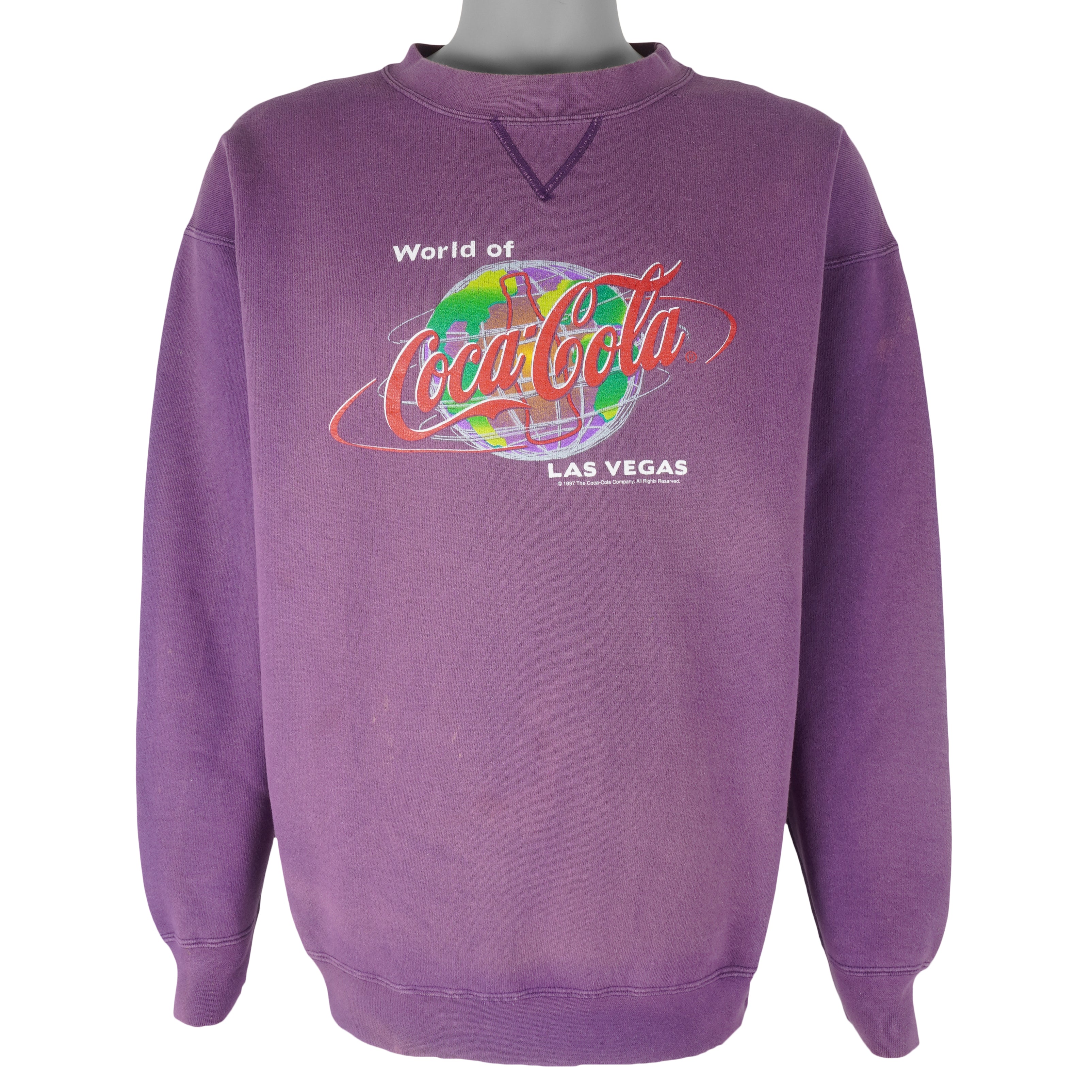 1990s Vintage World Of Coca-Cola Las Vegas Crew Neck Sweatshirt. Purple in color, big logo & spell-out, fits large size and is in very good condition.